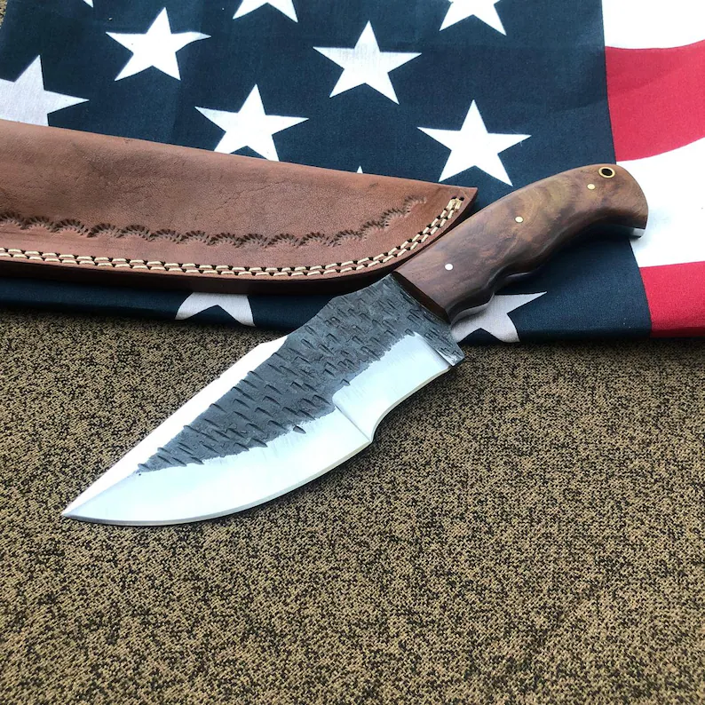 This custom handmade product has a nice hand forged with a combination of 1095 carbon steel 58-60 HRC. Black hammer mark blade