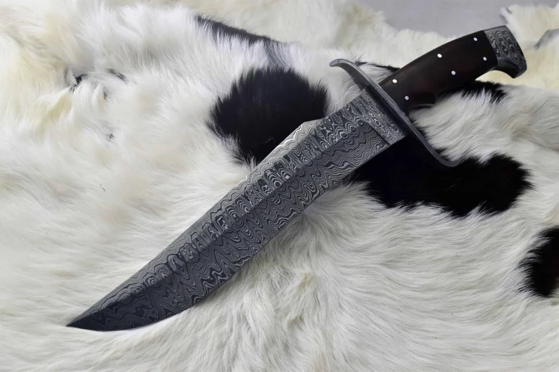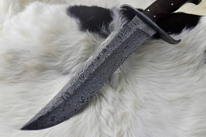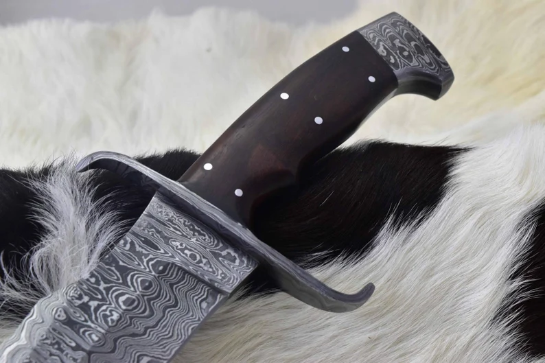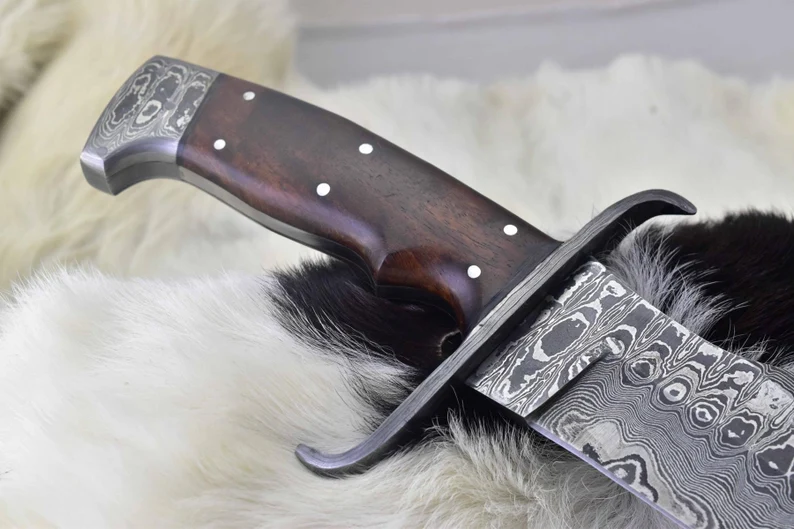 This custom handmade knife is an excellent choice for anyone seeking a high-quality, reliable, and stylish blade for outdoor, survival, or collectible purposes. The Damascus steel blade and guard, combined with the Roosewood handle, make it a truly unique and premium product.