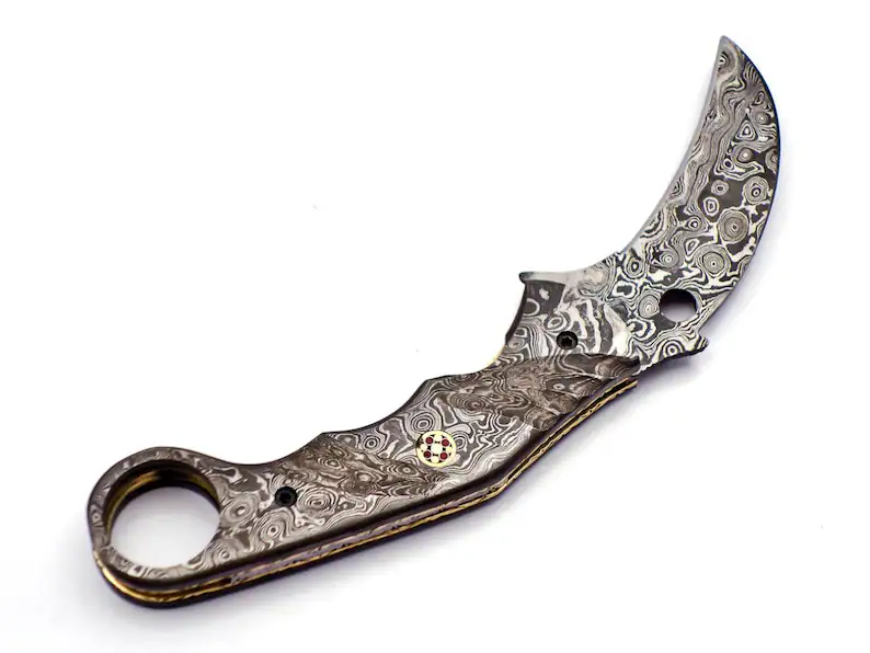Scores a 58 HRC on the Rockwell Scale – This metal is tough and ready for work. Creating Damascus steel is still unknown to this day. The process has been lost for the past 500 years. Today, we fold several different sheets of steel together and dip in Ferric Chloride which eats away the metals at different rates to show the Damascus pattern.