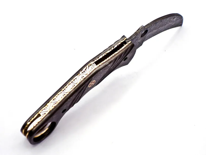 Custom Damascus Steel Karambit Folding Knife Pocket Knife Handle Made with Damascus Best Gift with for Father’s Leather Sheath