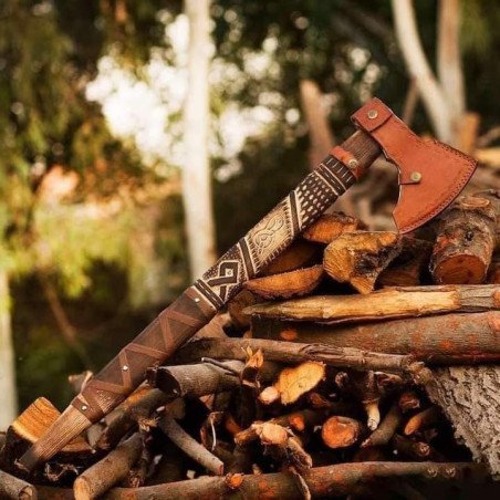 This exceptional axe is a masterpiece of hand-forged craftsmanship, featuring a high-carbon steel blade with a high polish finish. The axe is designed for durability, performance, and aesthetics.
