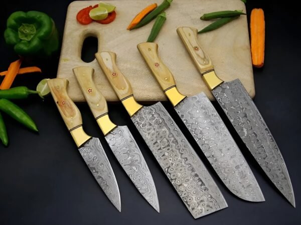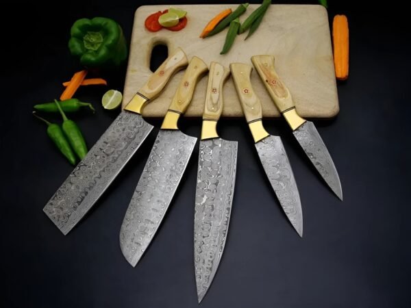 Custom Handmade Damascus Premium Quality 5 Piece Chef Knife Set, Hand Crafted