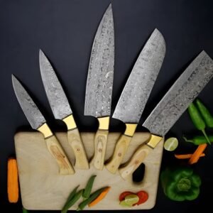 Be the first to review “Custom Handmade Damascus Premium Quality 5 Piece Chef Knife Set, Hand Crafted”