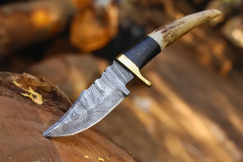 Be the first to review “Hand-Forged Damascus Steel Skinner Knife: Stag Horn Handle, Leather Sheath”